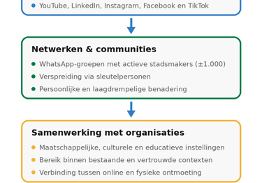 Deze kanalen dragen bij aan continuรฏteit, herkenning en inhoudelijke positionering.